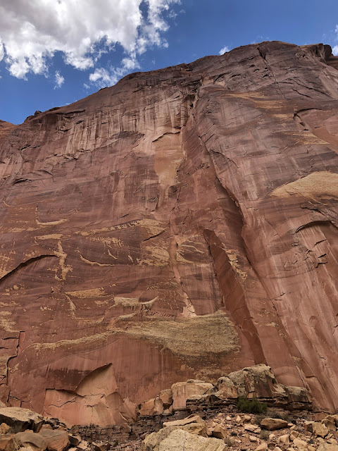 The main feature of Capitol Reef National Park is the Waterpocket Fold, which is basically a wrinkle in the earth, extending some 100 miles through the second largest national park in Utah. The least visited of the Mighty 5 - also including Arches, Zion, Bryce, and Canyonlands - Capitol Reef is a mixture of sandstone cliffs, domes, canyons, monoliths and even petryoglyphs. And it's, quite frankly, some of the most unique scenery I've ever seen. ( Keep in mind that I grew up in the flat farmland of Ohio)